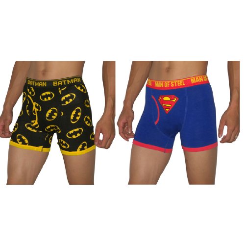 2 PACK: Mens Super-Heroes Stretch Boxers / Underwear: Batman & Superman (Man Of Steel) - Black & Blue Review